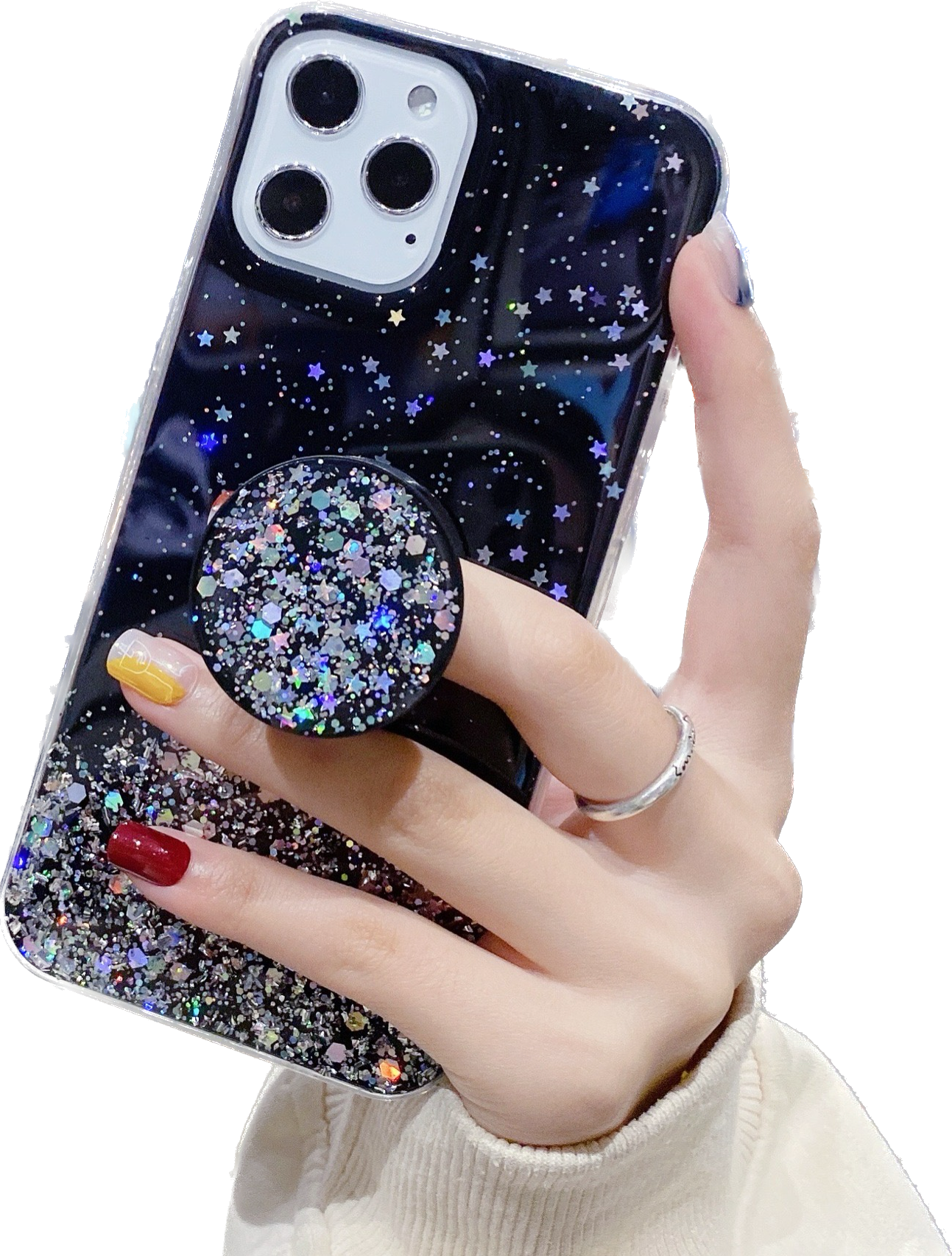 Pretty iPhone 14 Pro Max Case : Black Charms with Pop Socket