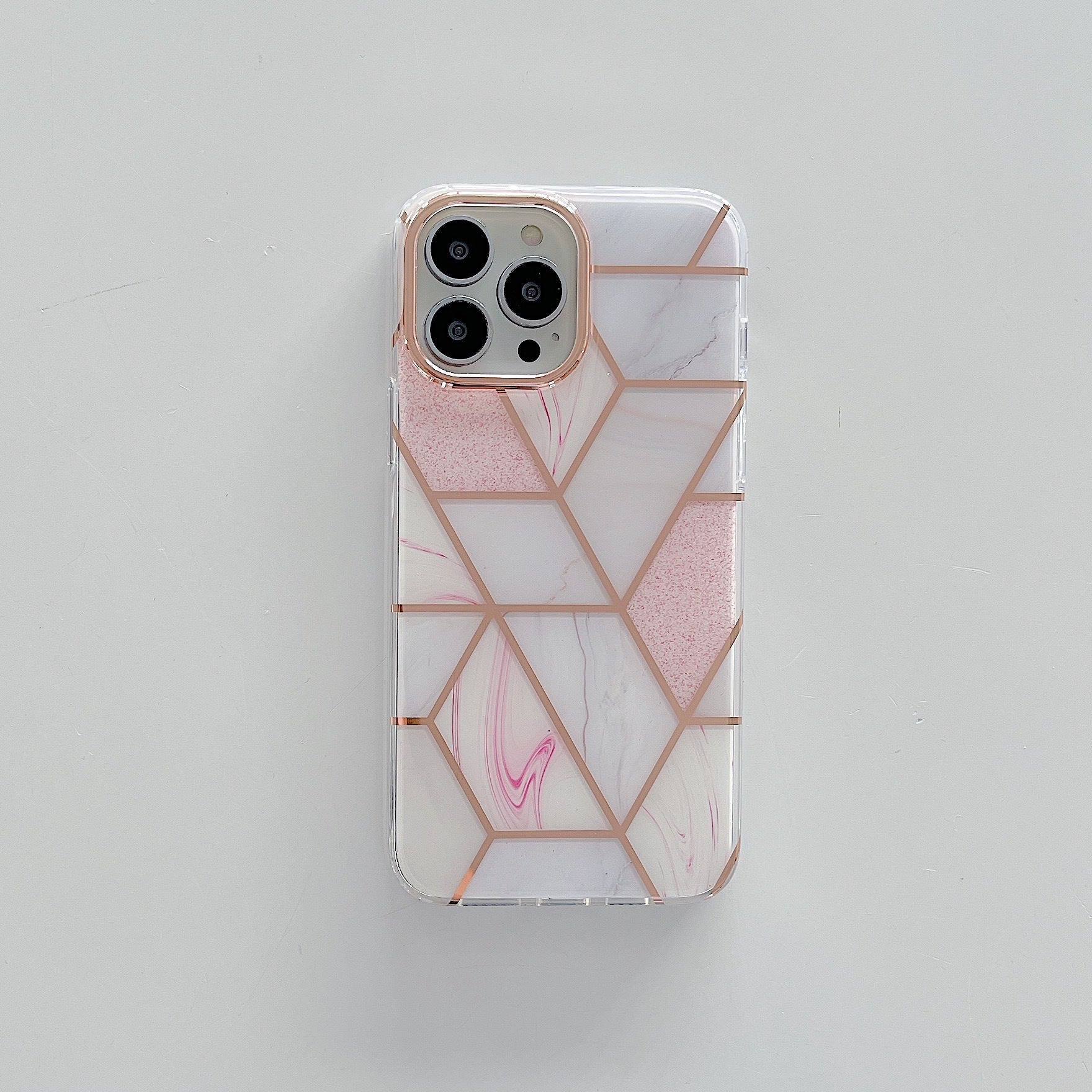 The golden chrome edge finish enhances the overall look, adding a luxurious touch that complements the unique design. Precision-engineered for a seamless fit, this case provides easy access to all buttons, ports, and features without the need to remove it. Combining high fashion with practicality, the MVYNO pink marble geometric effect hard case cover is the ideal accessory for those who want to protect their phone in style while making a statement.