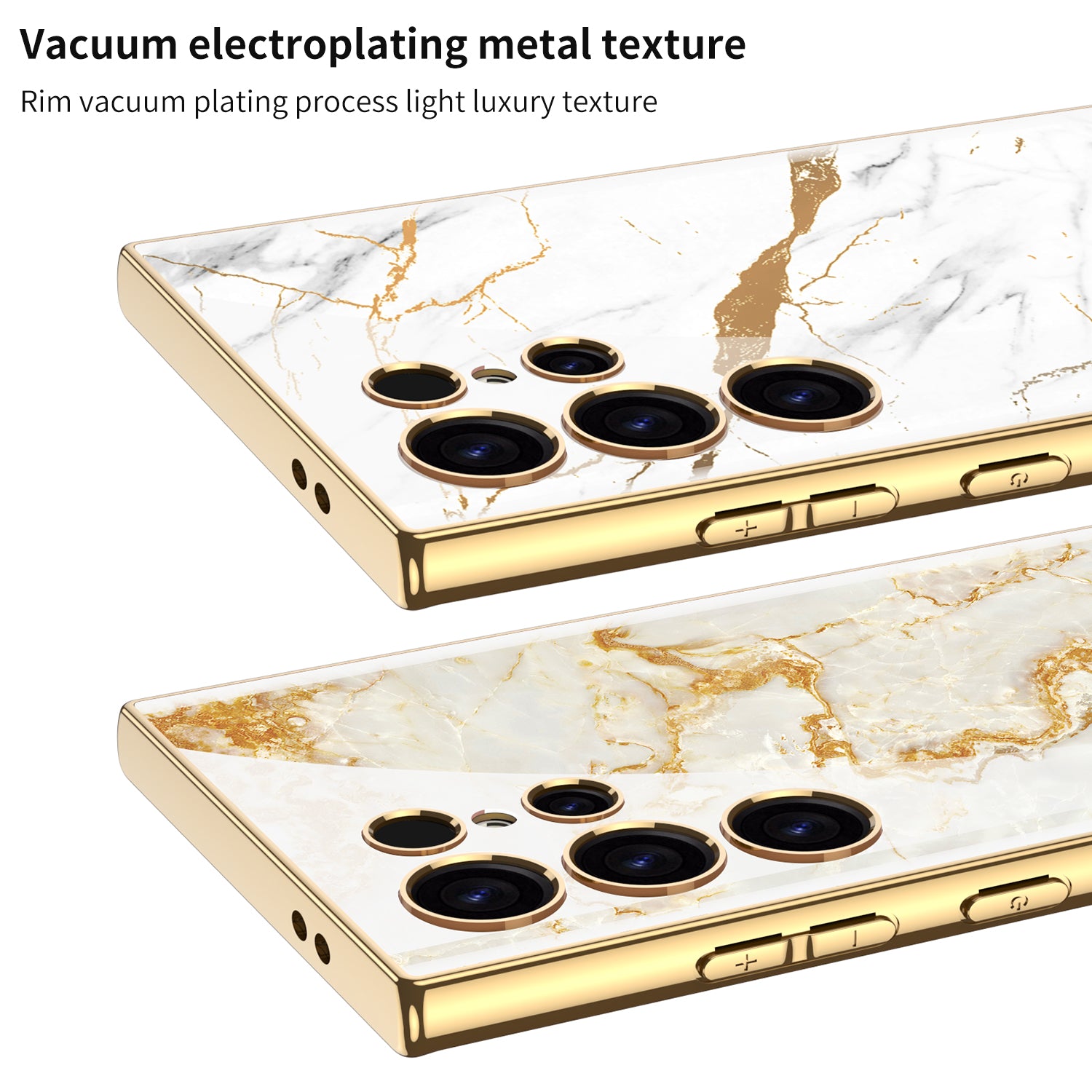 • Durable Construction: The electroplated glass and golden chrome edges offer durability and protection against scratches, bumps, and daily wear and tear.